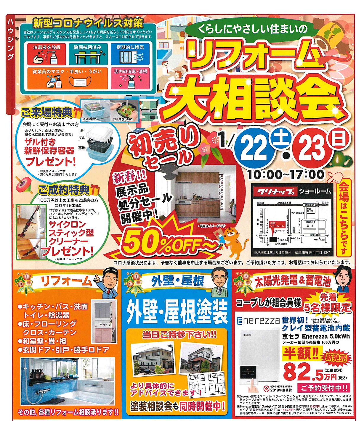 「リフォーム・外壁屋根塗装・太陽光大相談会」を中心とさせていただきます。