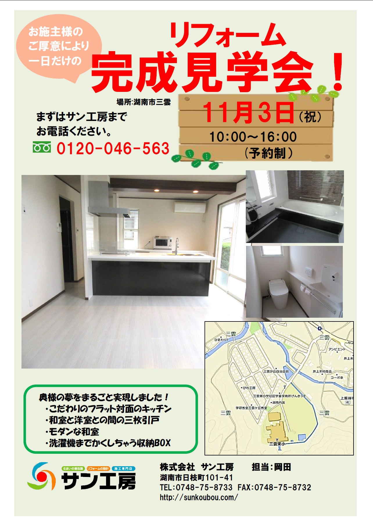 11月3日 サン工房、初のリフォーム完成見学会をやります。
