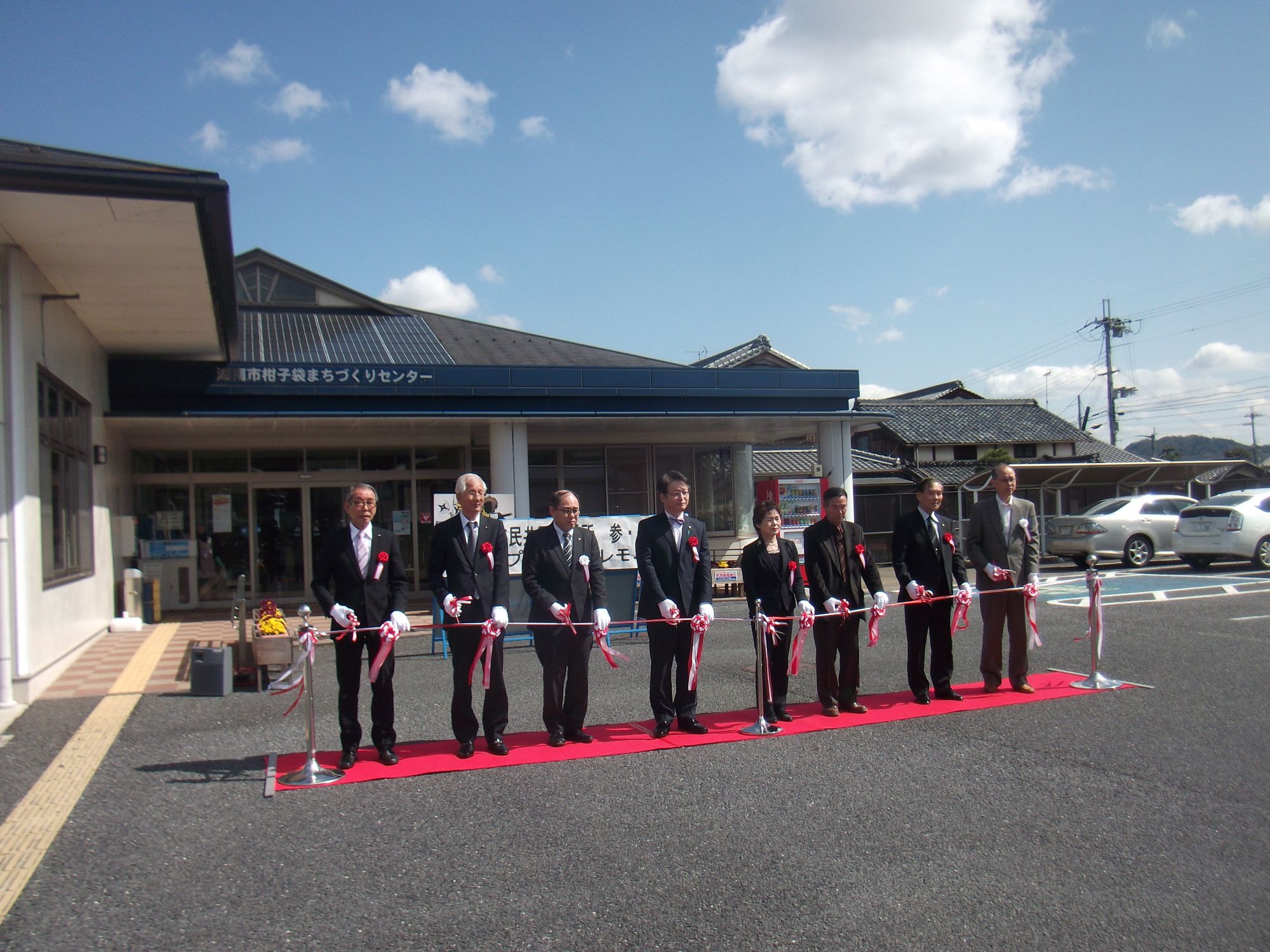 写真は谷畑英吾湖南市長様などとご一緒に、弊社社長の金藤もテープカットに参加させていただいた様子です。