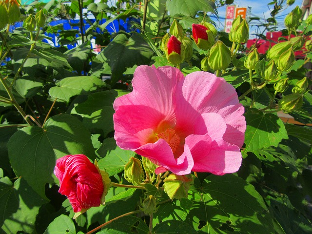 お店の庭で大きな花を咲かせている酔芙蓉です。