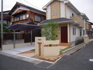 お家のナチュラルな感じに合わせてかわいい外構が出来上がりました 門柱に貼ったタイルとレンガがいい雰囲気を醸しだしています。