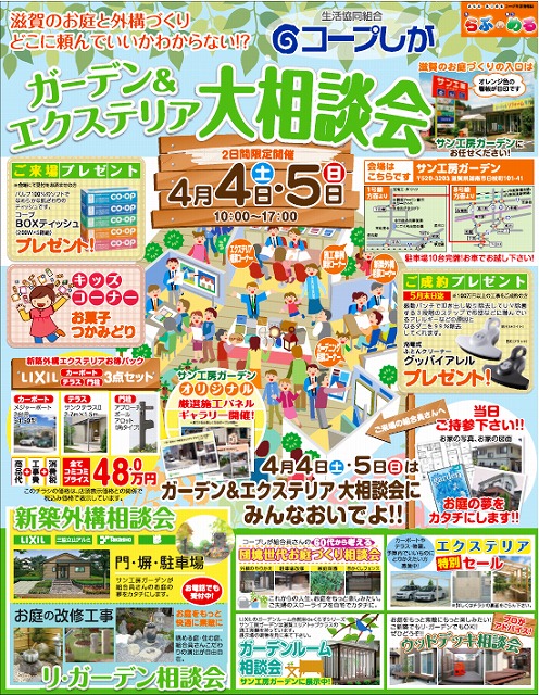 Warning: Declaration of HSM_Stylesheet::init() should be compatible with HSM_Module::init($args) in /home/nakamuragumi/nakamuragumi.ne.jp/public_html/wp-content/plugins/headspace2/modules/page/stylesheet.php on line 43 2015年4月4日5日 ガーデン&エクステリア大相談会大好評のうちに終了いたしました! ~滋賀のリフォーム、ガーデン、太陽光発電の株式会社サン工房~