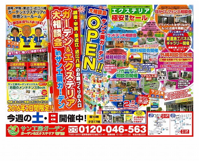 2016年3月12日(土)13日(日)ガーデン&エクステリア大相談会!大好評の内に終了しました! ~滋賀のリフォーム、ガーデン、太陽光発電の株式会社サン工房~