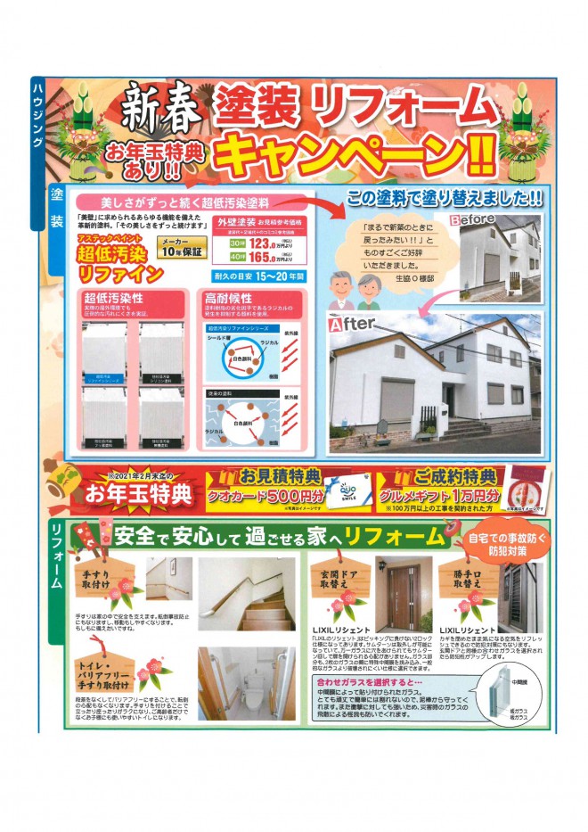 Warning: Declaration of HSM_Stylesheet::init() should be compatible with HSM_Module::init($args) in /home/nakamuragumi/nakamuragumi.ne.jp/public_html/wp-content/plugins/headspace2/modules/page/stylesheet.php on line 43 ★新春★塗装・リフォームキャンペーン実施します!お年玉特典あり! ~滋賀のリフォーム、ガーデン、太陽光発電の株式会社サン工房~