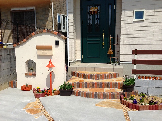 見た目にもかわいい階段と門柱です