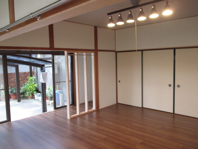 また構造上抜けない柱はそのまま残し、障子を撤去し、縁側のスペースを部屋の一部として使えるようにしました。